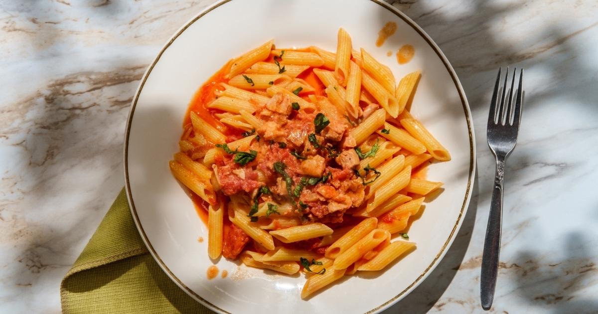 Vodka sauce is an excellent choice for pasta if you want a creamy and rich recipe. Combining the tomato with dairy or nondairy alternatives creates a great combination of acidity and creaminess. While the tomatoes cook and reduce in the saucepan, they start to caramelize and get a jam-like consistency, which combines well with the strong flavor of the vodka. Even though vodka does give a nice kick when drunk by itself, in this recipe, it is in the background of the flavor profile. You will also find a nice bright flavor with herby pepperiness.